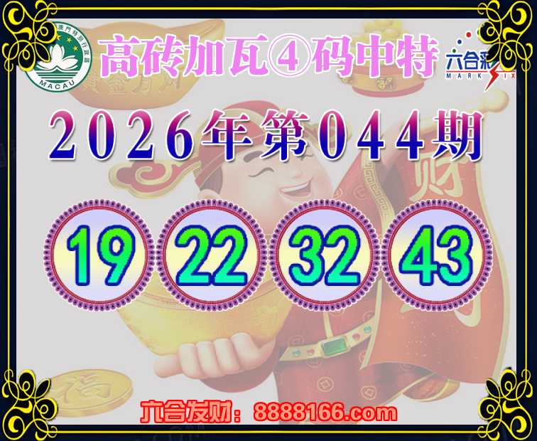 044期:《高砖加瓦》 ♥️④码中特♥️【19.22.32.43】开:19准