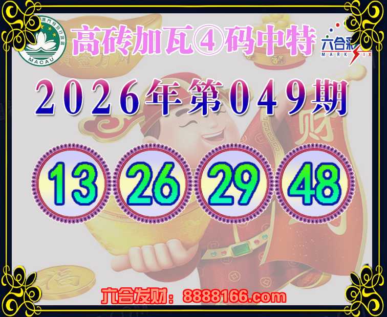 049期:《高砖加瓦》 ♥️④码中特♥️【13.26.29.48】开:13准