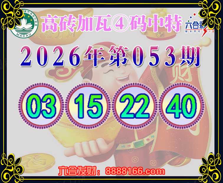053期:《高砖加瓦》 ♥️④码中特♥️【03.15.22.40】开:15准