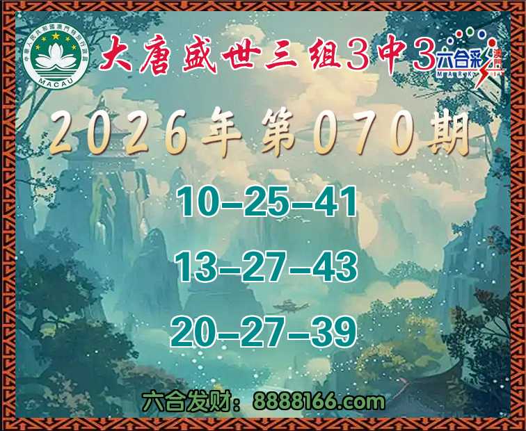 070期:【大唐盛世】 🏵️三组3中3🏵️