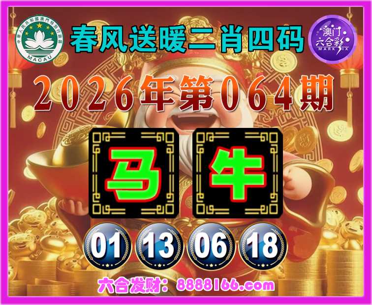 064期: 🎉《春风送暖》 🎉二肖四码🎉【马牛】【01.13.06.18】开:牛18准