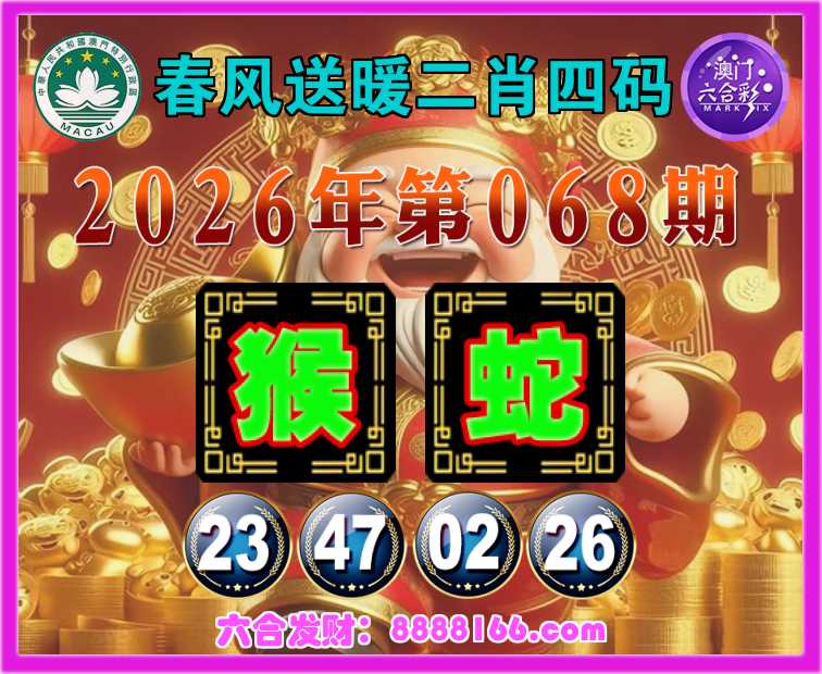 068期: 🎉《春风送暖》 🎉二肖四码🎉【猴蛇】【23.47.02.26】开:猴23准