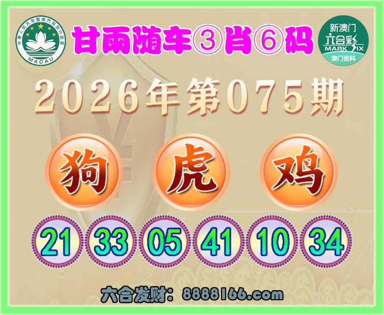 075期:《甘雨随车》 ⌚③肖⑥码⌚【狗虎鸡】开:狗33准