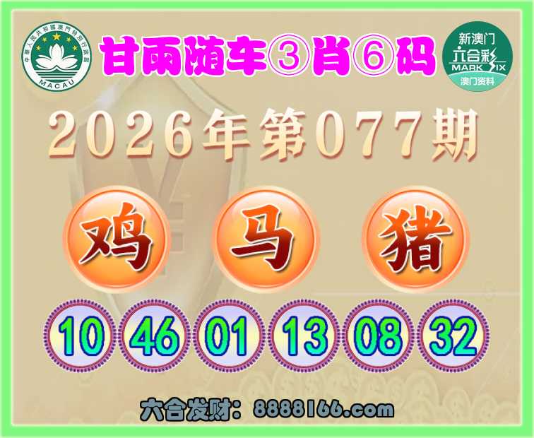 077期:《甘雨随车》 ⌚③肖⑥码⌚【鸡马猪】开:虎29错