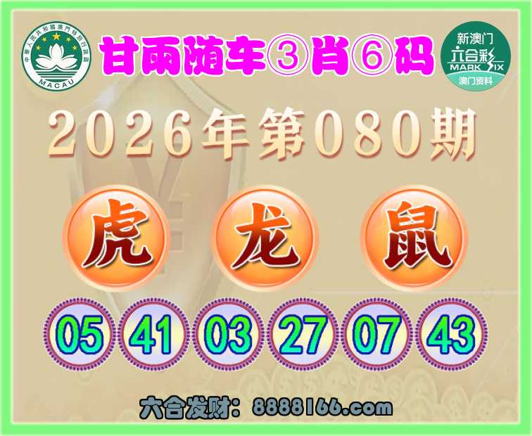 080期:《甘雨随车》 ⌚③肖⑥码⌚【虎龙鼠】开:龙03准