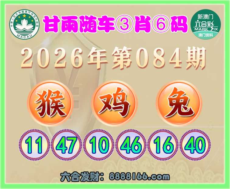 084期:《甘雨随车》 ⌚③肖⑥码⌚【猴鸡兔】开:兔16准
