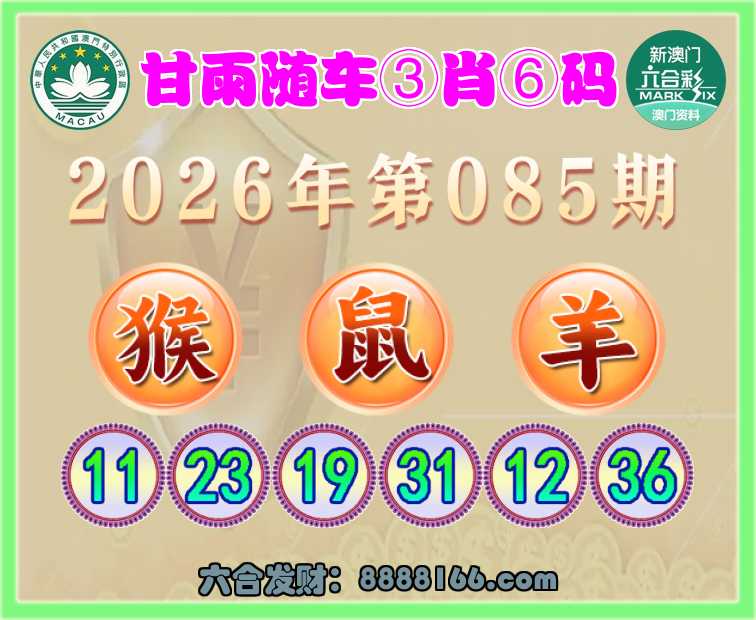 085期:《甘雨随车》 ⌚③肖⑥码⌚【猴鼠羊】开:鼠19准