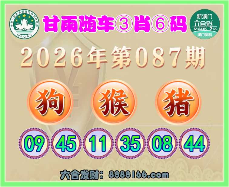 087期:《甘雨随车》 ⌚③肖⑥码⌚【狗猴猪】开:蛇26错