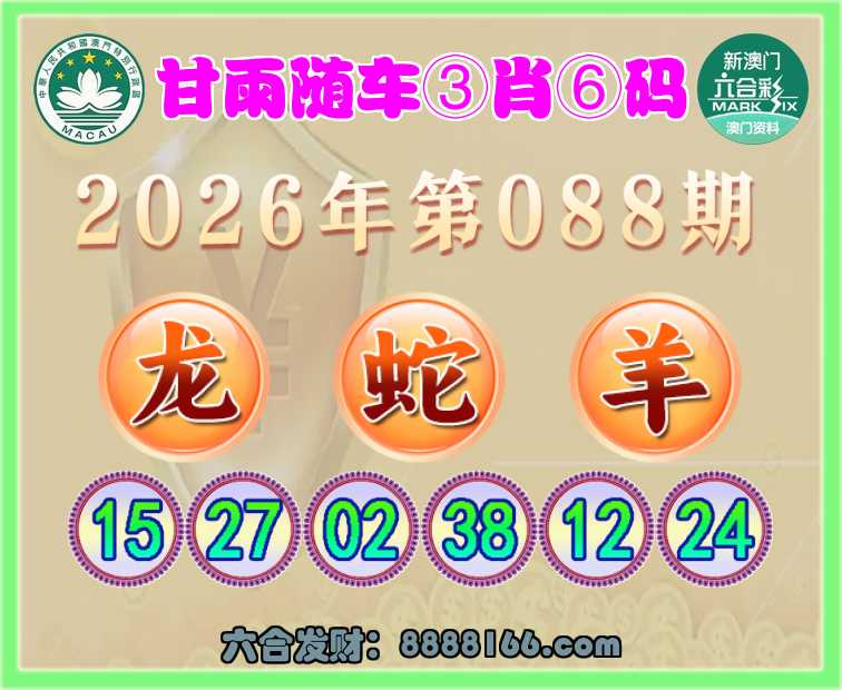 088期:《甘雨随车》 ⌚③肖⑥码⌚【龙蛇羊】开:龙27准