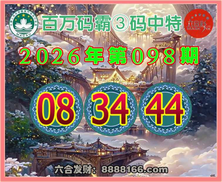 098期: 😳『百万码霸』 😳③码中特😳【08.34.44】开:00准