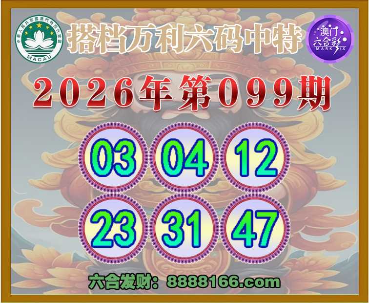 099期:【搭档万利】 👑六码中特👑【03.04.12.23.31.47】开:12