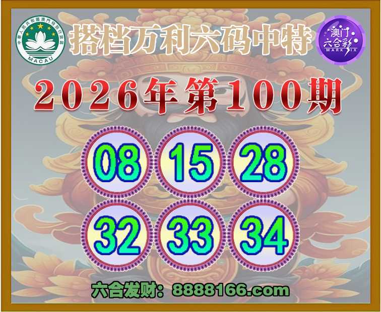 100期:【搭档万利】 👑六码中特👑【08.15.28.32.33.34】开:33
