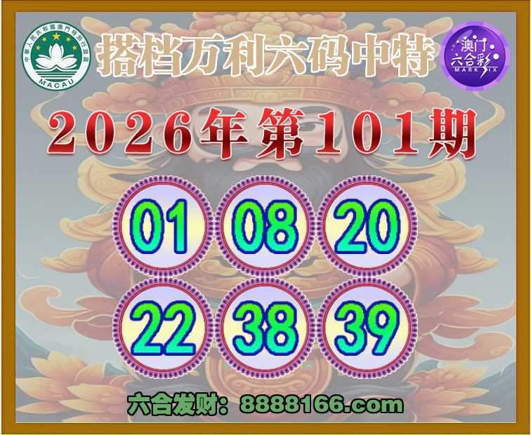 101期:【搭档万利】 👑六码中特👑【01.08.20.22.38.39】开:39