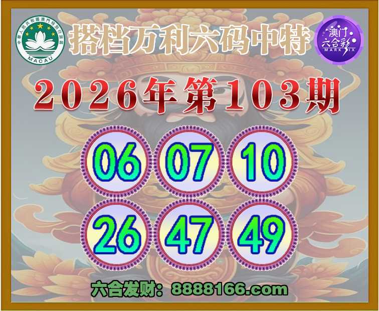103期:【搭档万利】 👑六码中特👑【06.07.10.26.47.49】开:06