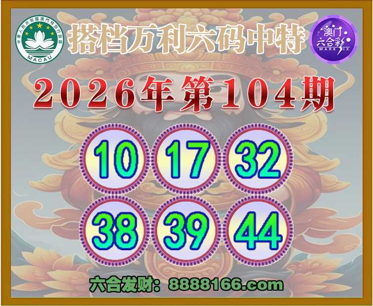 104期:【搭档万利】 👑六码中特👑【10.17.32.38.39.44】开:01