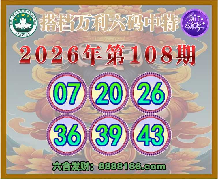 108期:【搭档万利】 👑六码中特👑【07.20.26.36.39.43】开:45