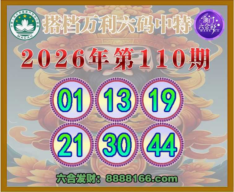 110期:【搭档万利】 👑六码中特👑【01.13.19.21.30.44】开:30