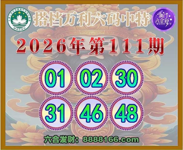 111期:【搭档万利】 👑六码中特👑【01.02.30.31.46.48】开:01