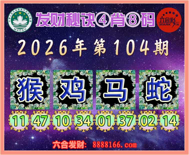 104期:『发财秘诀』 🧦④肖⑧码🧦【猴鸡蛇】开:马01