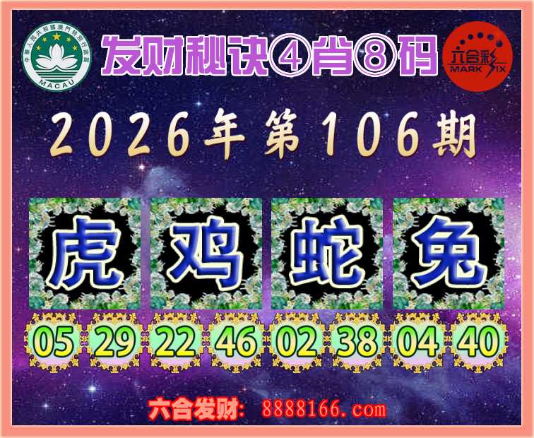 106期:『发财秘诀』 🧦④肖⑧码🧦【虎蛇兔】开:鸡22