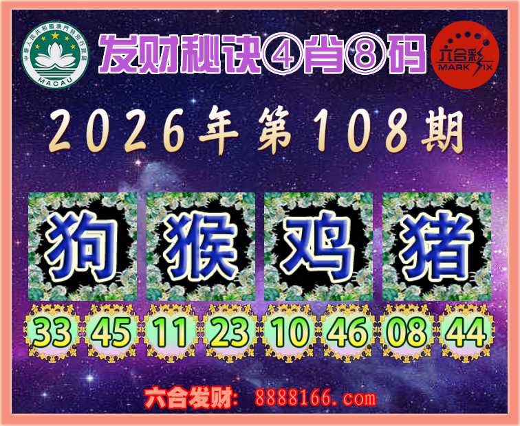 108期:『发财秘诀』 🧦④肖⑧码🧦【猴鸡猪】开:狗45